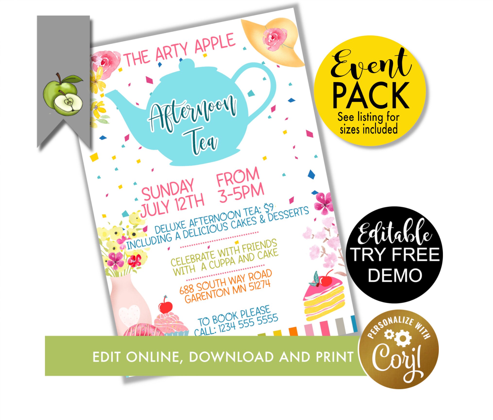 Source : www.etsy.comEditable Tea Party Flyer Invitation, Church School Community